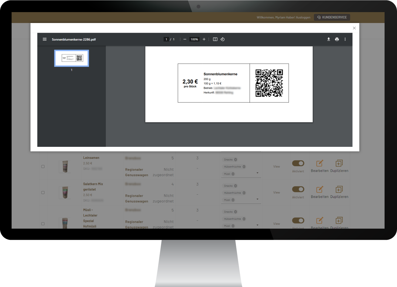 Crea tus productos en nuestro software. Esto genera etiquetas de precio con código QR adecuadas para imprimir.