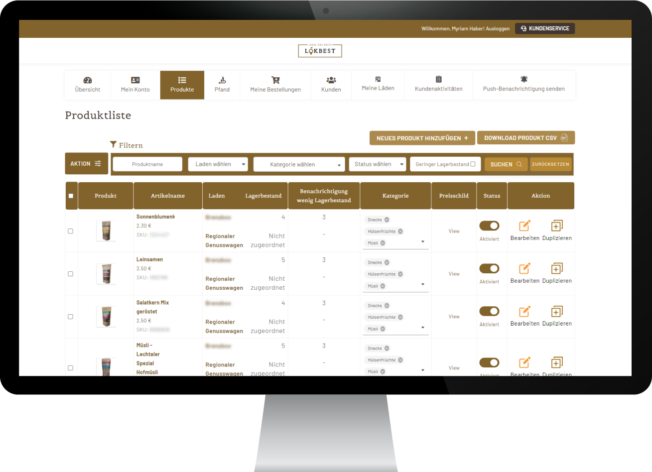 Con la solución de software de Lokbest, podemos llegar a nuestros clientes las veinticuatro horas del día sin tener que estar permanentemente in situ con personal. Con esta solución pudimos ampliar la comercialización de nuestros productos regionales y conseguir nuevos clientes. Nuestros clientes aprecian poder comprar productos regionales de forma centralizada y en cualquier momento. El llenado de las estanterías se puede planificar muy bien desde nuestro almacén, ya que las existencias están todas registradas.