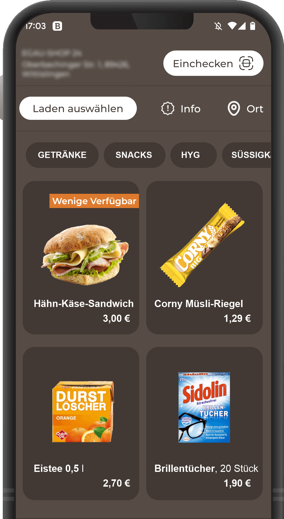 Mit dem Handy öffnen, stöbern, zahlen – fertig. Die App macht den Einkauf im Pausenraum so einfach wie noch nie.